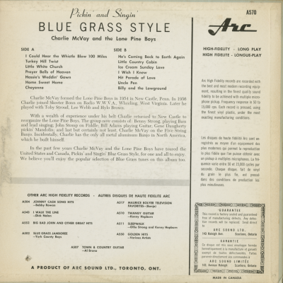 Pickin' And Singin' Blue Grass Style Charlie McVay And The Lone Pine Boys