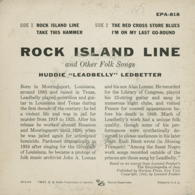 Rock Island Line And Other Folk Songs By Leadbelly