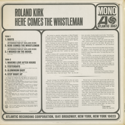 Roland Kirk Recorded Live Here Comes The Whistleman
