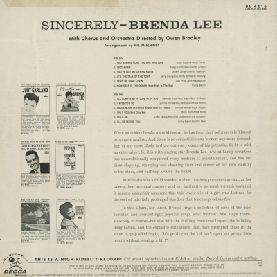 Sincerely, Brenda Lee