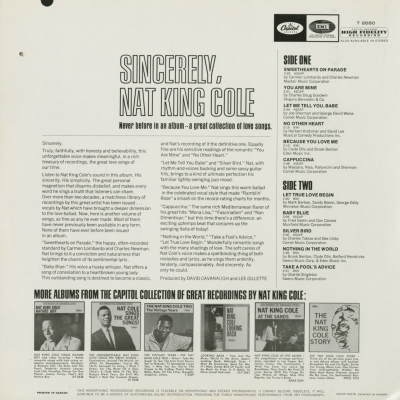 Sincerely, Nat King Cole