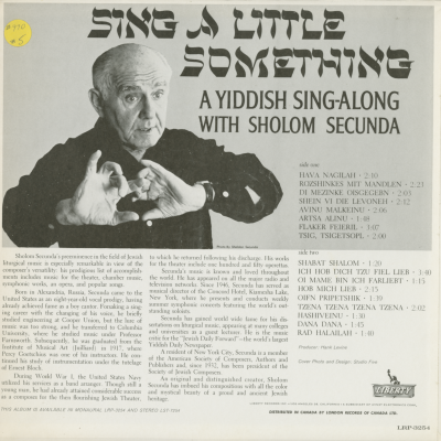 Sing A Little Something A Yiddish Sing-Along With Sholom Secunda