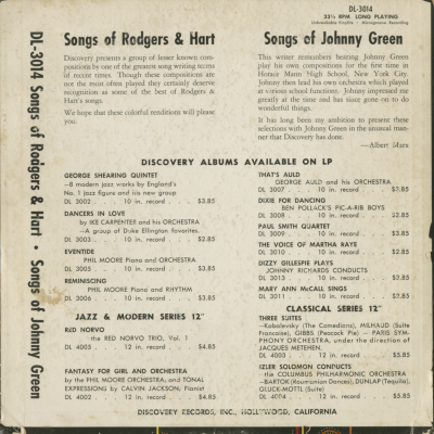 Songs By Rodgers & Hart & Johnny Green