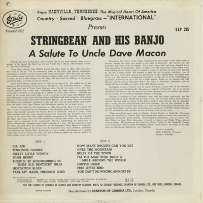 Stringbean And His Banjo In A Salute To Uncle Dave Macon
