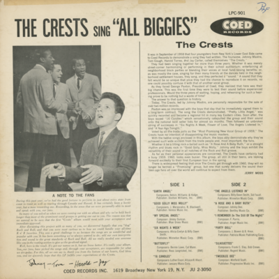 The Crests Sing All The Biggies