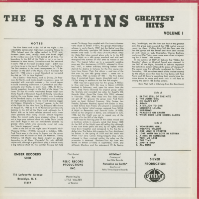 The Five Satins Greatest Hits Volume 1