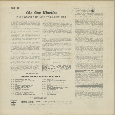 The Gay 90s Johnny O'Toole And His Naughty Naughty Band