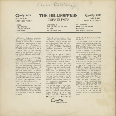 The Hilltoppers Presents Tops In Pops