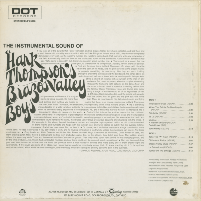 The Instrumental Sound Of Hank Thompson's Brazos Valley Boys