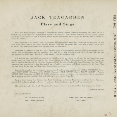 The New Jack Teagarden Plays And Sings Volume II