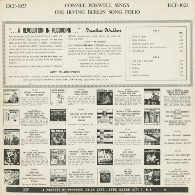 The New Sound Of Connee Boswell Singing The Irving Berlin Song Folio
