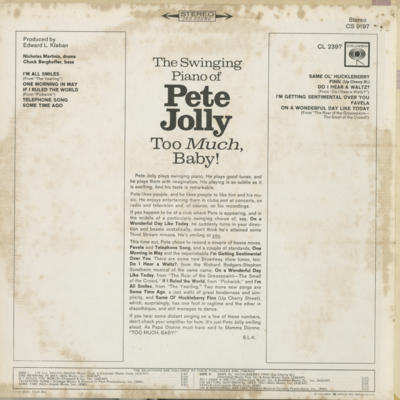 The Swinging Piano Of Pete Jolly Too Much Baby!
