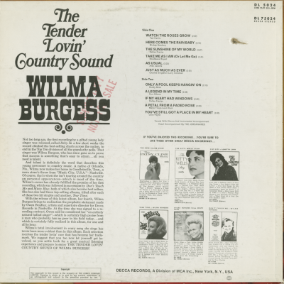 The Tender Lovin' Country Sound Of Wilma Burgess