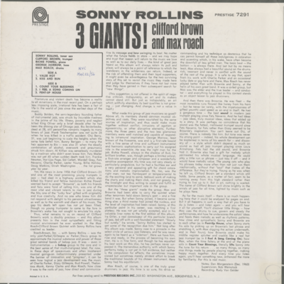 Sonny Rollins Three Giants! Clifford Brown And Max Roach