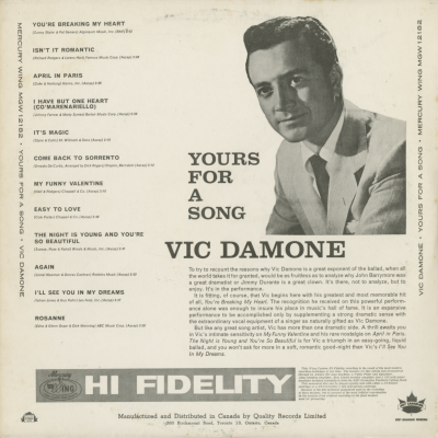 Vic Damone Yours For A Song