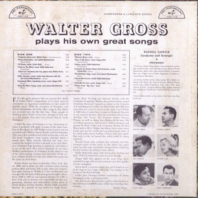 Walter Gross Plays His Own Great Songs