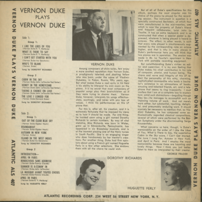 Vernon Duke Plays Vernon Duke With Vocals By Dorothy Richards