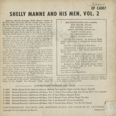 Shelly Manne And His Men Vol 2