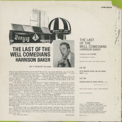The Hungry I Presents The Last Of The Well Comedians Harrison Baker